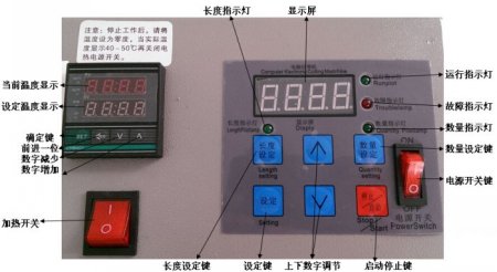 記憶功能:在開關(guān)關(guān)閉前,自動(dòng)存儲(chǔ)所設(shè)值的切斷長度和切斷數(shù)量以及切斷速度。