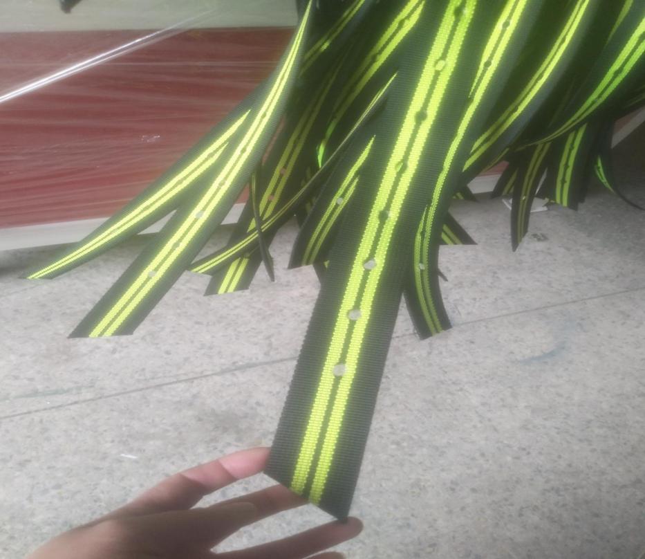 4. 織帶沖孔剪切一次性完成:超聲切帶沖孔,自動(dòng)封口,絕無毛邊,不發(fā)黑,不發(fā)臭,平滑圓整,不散邊。