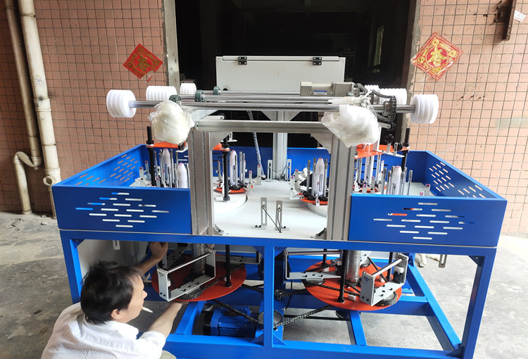 產(chǎn)品介紹:本機器全稱多功能全自動三股繩一體機,是萬氏公司研發(fā)的用于編制多種用途三股繩的機器。機器整體采用自動化控制系統(tǒng),可通過觸摸屏自主調(diào)節(jié)繞絲數(shù)量、成品繩松緊度以及繞絲間距,以滿足客戶產(chǎn)品的不同需求。機器采用一健啟動功能,操作簡便高效。相比與傳統(tǒng)三股繩一體機,本機器可節(jié)約人工成本50%左右,減少場地占地面積40%左右,噪音更低,機器性能更加穩(wěn)定。一臺機器每分鐘可生產(chǎn)產(chǎn)品繩7米以上,極大程度的提升了生產(chǎn)效能,為織帶行業(yè)助力。